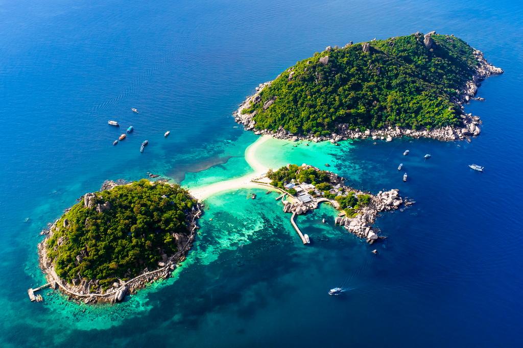 【龜島海域一日遊】:蘇梅島周圍約有80多座零星島嶼,其中最熱門的是有潛水天堂之稱的《龜島》與《南園島》。 早上到碼頭搭乘快艇前往窺探龜島海域的《珊瑚灣》海中世界。這裏的海水清澈見底,船一停下,遊客早已掩不住興奮與衝動,戴上業者提供的面鏡與呼吸管躍入海裡,數以百計的熱帶魚化身成超熱情的迎賓魚群。膽大的遊客若朝魚群闖入,雖不會被魚群攻擊,但熱帶魚在全身來回穿梭的觸感,與魚群撞擊護目鏡所發出的「咚、咚、咚」聲響,震懾程度,絕非筆墨所能形容。